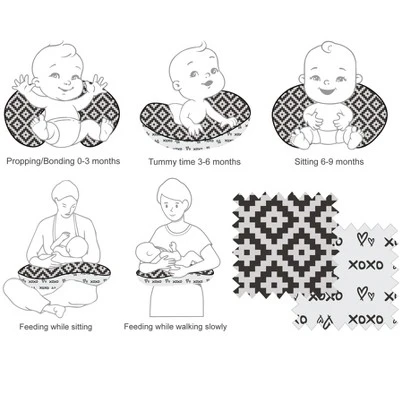 Bacati – 3 Pc Love Aztec Print Black Hugster Feeding & Infant Support Nursing Pillow