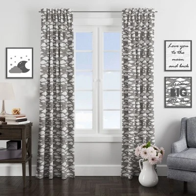 Bacati – Clouds In The City Grey Clouds Cotton Printed Single Window Curtain Panel