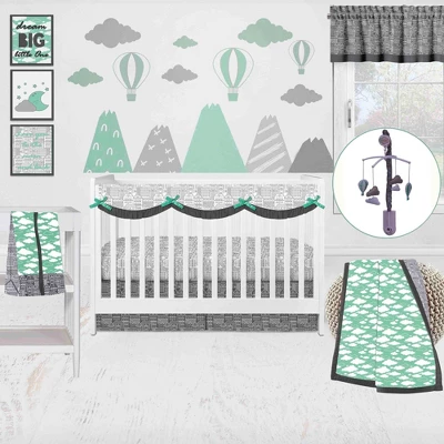 Bacati – Clouds In The City Mint//Gray Long Side Crib Rail Guard Cover