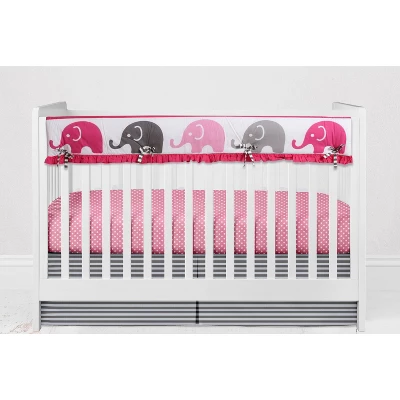 Bacati – Elephants Long Crib Rail Guard Cover Pink/Gray