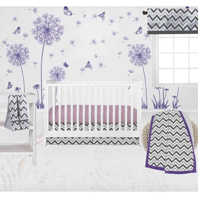 - 10 pc Crib Set with 2 Crib Fitted Sheets: Cotton Percale Reversible Comforter/Play Mat, Four Muslin Cotton Swaddle Blankets, Two Cotton Percale Fitted Crib Sheets, Cotton Percale Crib Skirt/Bed Ruffle, Diaper Stacker and Window Valance.