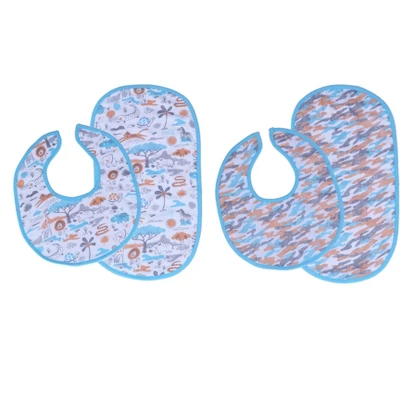 - 4 pack: 2 burp cloths (20 x 10 inches), 2 bibs (14 x 10 inches)
