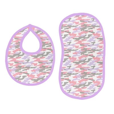 - 4 pack: 2 burp cloths (20 x 10 inches), 2 bibs (14 x 10 inches)