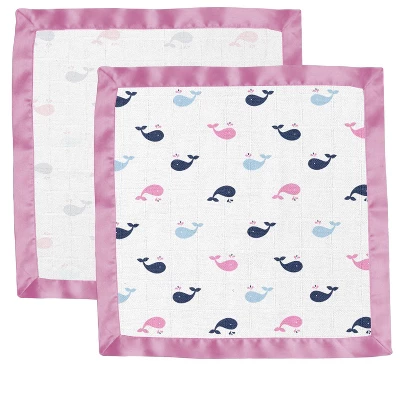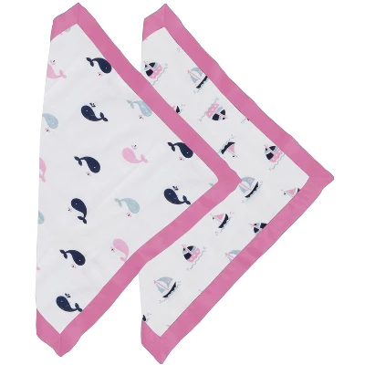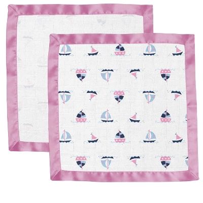 Bacati – Little Sailor Girls Boats/Whales Muslin 2 Pc Security Blankets