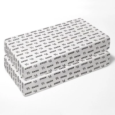 - This Bacati 10-piece Crib Set Includes Reversible Comforter/Playmat (33 x 43 inches), Two Crib fitted sheets (52 x 28 x 6 inches), Crib Skirt/Dust ruffle (13 inch drop) Diaper Stacker (holds more than 30 newborn diapers), Window Valance (15 h x 56 w inches with 1.75 inch Rod Pocket), 3 pc Wall Hangings Set and Musical Mobile in fun, colorful and signature prints in 100 percent cotton 200 Thread Count percale fabrics. Designed in United States by Experienced Designers. Many coordinating items available to purchase separately in this Bacati Love Black Gold Bedding Collection.