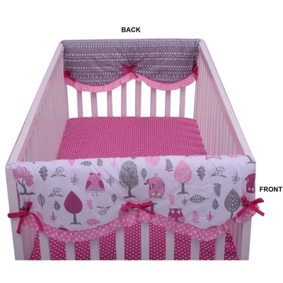 Bacati – Owls Pink/Gray Girls Cotton Crib Rail Guard Covers Set Of 2 Small Side