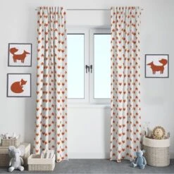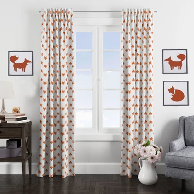 - Bacati – Mix N Match Yellow/Charcoal Chevron Single Curtain Panel is made from 100% cotton percale fabric. It has classic fox print all over. Dimensions: 42 x 84