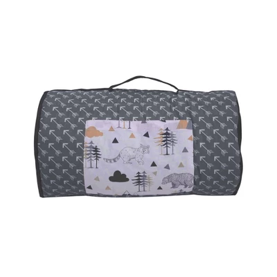 The Bacati Toddler Nap Mat is our cutest nap mat yet and customer favorite! With an attached comforter blanket and a convenient removable pillow, you can be sure your little one will stary warm and cozy. The mats are made for children of all ages and sizes measuring in at 20 x 50 inches. It rolls up with a snap closure and has a carrying handle for added convenience. Perfect for nap time at preschool, daycare or even sleepovers at grandmas house. Its large size makes it versatile as a playmat as well as a nap mat. The toddler nap mat is machine washable and gets softer with every wash. The attached blanket is a super soft plush blanket made of 100% polyester, while the floor side shell is made 100% cotton percale. Cotton percale is hypoallergenic, breathable and perfect for childrens sensitive skin. It has a layer of polyester batting inside the bottom of the mat, to provide added comfort and support. Also included is 100% polyester filled removable pillow.